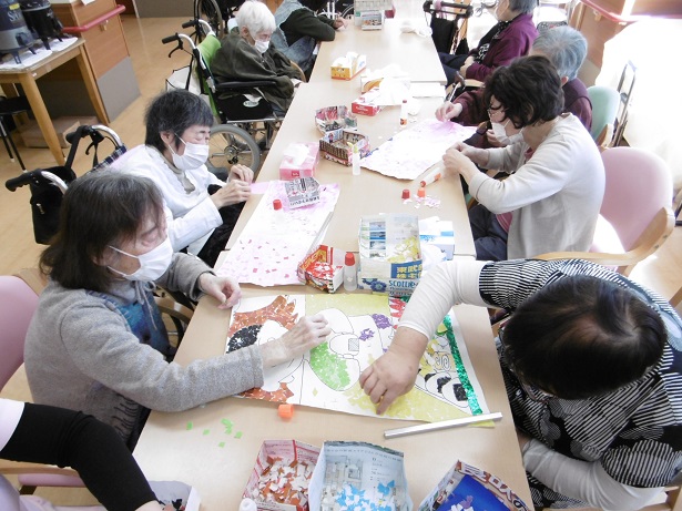 4月へ向けて、貼り絵を頑張っています♬